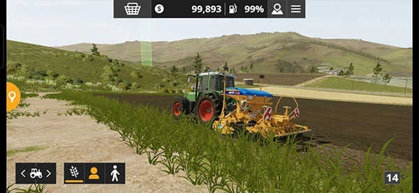 芬特515c是那台绿色的拖拉机,它后面跟着一台播种机,需要玩家自行挂接。操作极为简便,在游戏中只需倒车就能自动完成连接。这一设定旨在帮助玩家熟悉农机的接挂流程以及播种机的使用方法。除了部分高端播种机具备耕、播、施肥一体化的功能外,其余播种机仅能在已耕好的土地上进行播种。就好比上面那块茬地,初级播种机无法直接在上面开展作业。