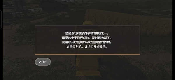 正式踏入游戏,映入眼帘的便是我们的农场。最先接触到的内容便是“收割”,眼前已然有一片成熟的麦地,还有一台new holland纽荷兰收割机。具体各个图标含义,详见下图:
