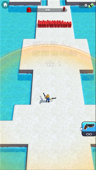 2、操作极易上手,在游戏里仅需轻点屏幕,角色就能前进,射击动作也会自动完成,无需额外操控。