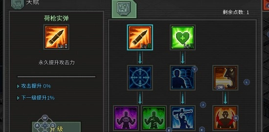 2、天赋系统:角色每升一级便能获取天赋点,这些天赋点可用来提升天赋。在此推荐大家的升级路线为:荷枪实弹→精准→愤怒→狂野→内伤(眩晕亦可),走到这一步,想必各位自己就能清楚后续该点哪些天赋了。
