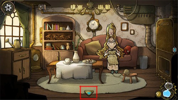 6、在客厅会和母亲发生一些剧情故事,之后母亲让我们把做好的曲奇饼干拿到楼上去给妹妹,于是我们点击屏幕下方的返回按钮,回到大厅。