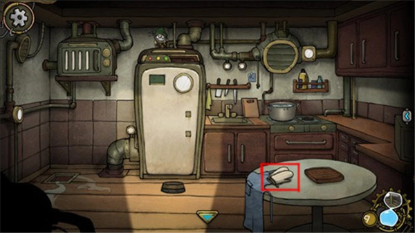 8、当你走进厨房,便能瞧见桌子上摆放着一双隔热手套,点击一下即可获取这双手套。