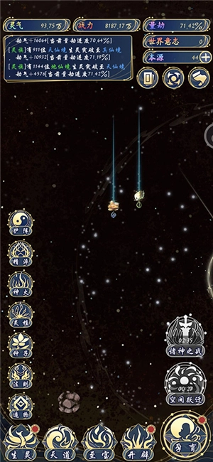 3、我先是点了灵气和孕育双倍概率,最后才点战力,反正又不去中世界,战力完全够用。