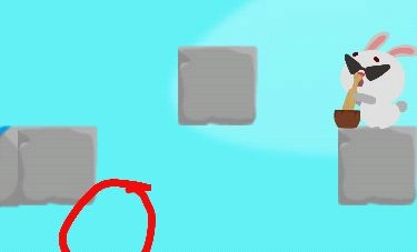 (简单文字说明:长按右键,对最左侧的1×1方块进行反墙操作,角色上部就有机会触碰到上方1×1方块的下侧。完成此操作后,在右侧1×1方块的左侧攀爬,直至到达下图中动物所在位置。)