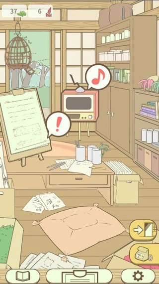1、首先我们来到了游戏的室内界面,这里有一台看广告获取奖励的电视,还有一块发布帮助信息的画板,我们现在点击这块画板。