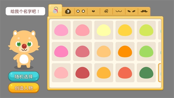 2、接下来就要正式的进入咱们的游戏啦,首先你要自己创造你的小宠物,感觉这一点还是做得比较好的,因为很多游戏就是固定了一个宠物,不能自己创造。开始肯定要为自己的小宠物取一个名字啦,这个根据你自己的爱好来就好,然后你还可以给它搭配发型眼睛等一系列东西,弄好了之后就可以创建人物啦。如果你比较懒的话,你也可以直接点击随机选择,只要你不怕你的宠物长得丑。