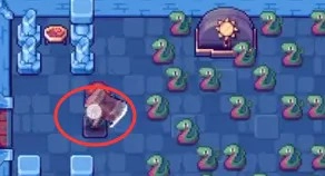2、然后会掉下来很多蛇,直到有一条蛇掉到右侧的机关上,使用放大镜放大那条蛇