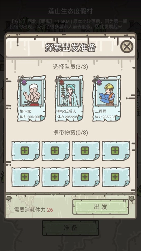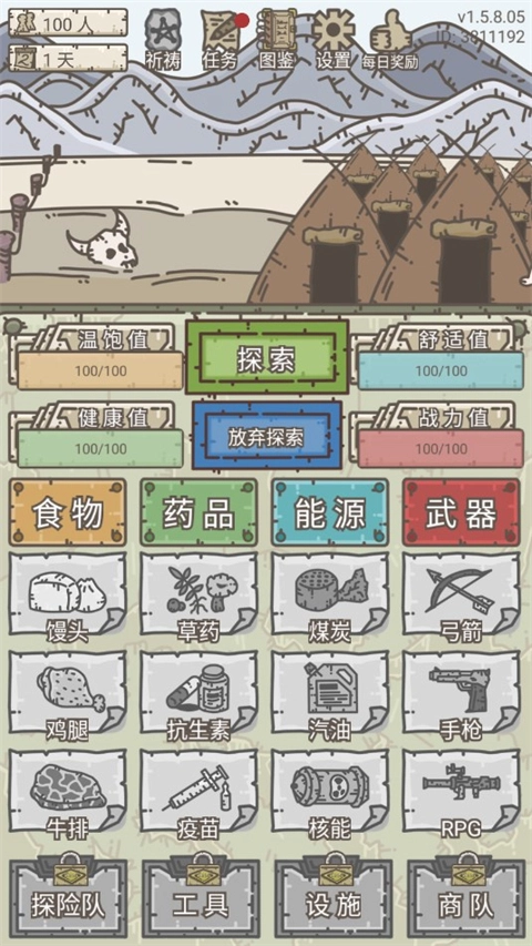 ④每次进入副本探索,都会消耗温饱值、健康值以及战力。而在副本内与敌人进行战斗时,健康值和战力会大量损耗。一旦健康值或者战力其中一项不满足要求,就会被强制判定为失败,并消耗人口。(需注意:在一百天之后,战斗的数量和难度将大幅提升;到了三百天之后,哪怕是副本里的小怪都极难战胜。)