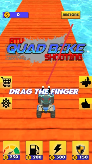 1. 在启动页面,依照“DRAG - THE - FINGER”的指示,滑动手指来操控四轮摩托,进而开启游戏。