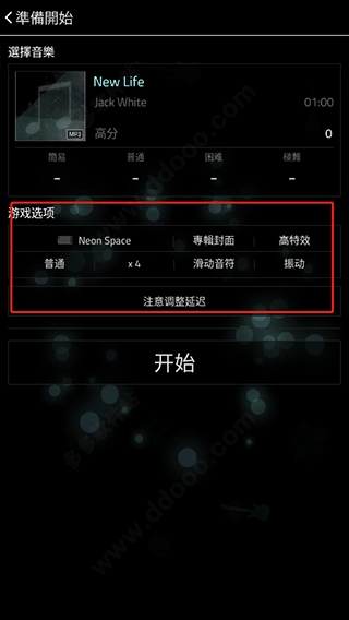 4、选好歌曲之后,可对游戏选项进行设置,随后开启游戏。
