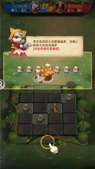1. 可通过拖动士兵,随意交换其位置,当有3个或3个以上相同的士兵时,即可进行合成。