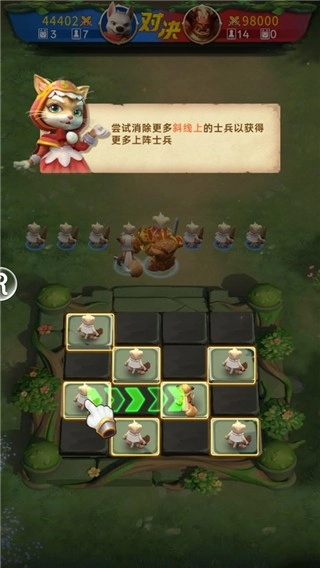 6、试着清除更多斜线上的士兵,以获取更多可上阵的士兵。