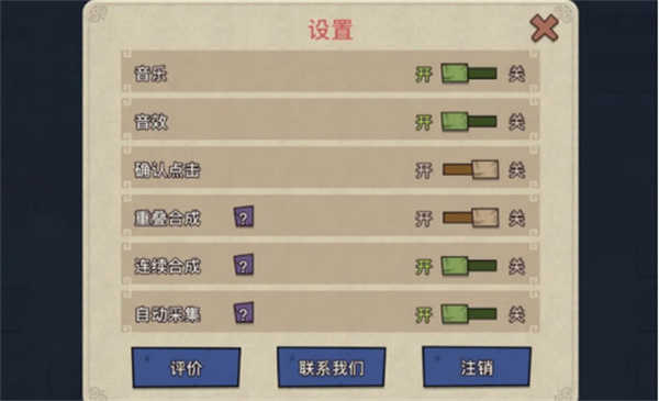首先,背景音乐这块因人而异哈,要是关掉音乐,就能边听歌边玩游戏。另外,自动采集和连续合成这两个功能最好都关掉。要是不关掉自动采集,小幻兽们采集时就会毫无章法,白白消耗体力,而且场地也会变得杂乱无章。关掉连续合成是为了进行5合操作,这一点一定要牢记。在这个游戏中,除了那些无法合并的物品,其他所有东西进行5合都更为划算。