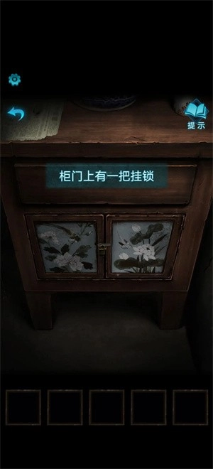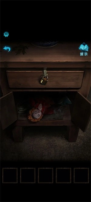 4、右边柜子的抽屉是空无一物的,在第二层放置着一把挂锁,因此我们得寻找一把小钥匙。