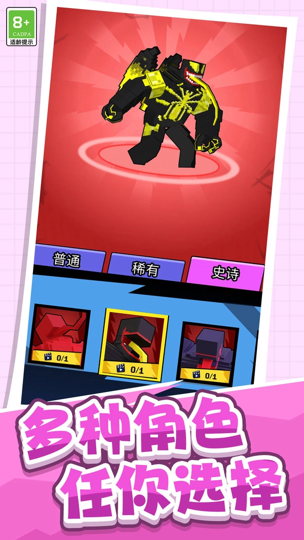 1. 能够解锁各类炫酷皮肤,涵盖普通、稀有直至史诗级别,以此展现别具一格的角色风格。