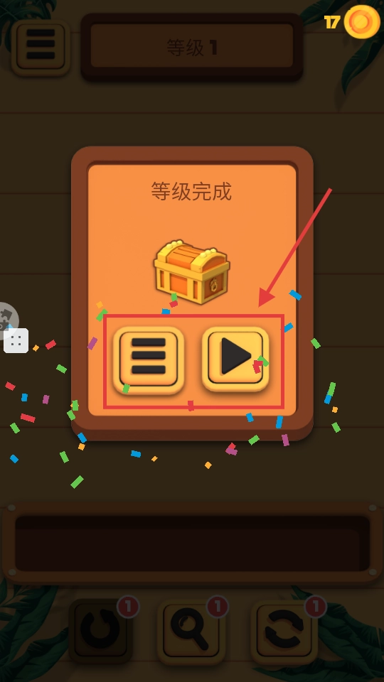 4、完成关卡后,点击播放按钮进入下一关,或者点击菜单按钮查看关卡列表,继续挑战以获取奖励。
