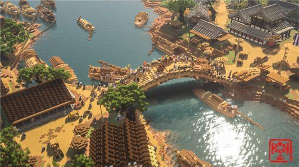在《我的世界》中,明星开发者团队“国家建筑师Cthuwork”以精湛技艺,将北宋绘画大师张择端的《清明上河图》进行了巧妙还原。借助沙盒类游戏独特的光影效果与色彩渲染,北宋时期的街井全貌栩栩如生地展现于游戏之中,使玩家能够直观领略中国传统文化的迷人魅力。
