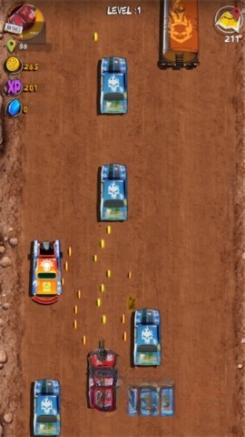 4、依据实时车流状况灵活变动车道,击毁更多敌方车辆,最终取得关卡评价,留意得分哟。