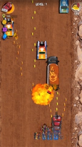 3、成功击败敌方车辆后,会掉落金币、经验、医药箱以及攻击道具等各类道具。若能运用合理策略,巧妙利用这些道具,将显著提升你的战斗效能。