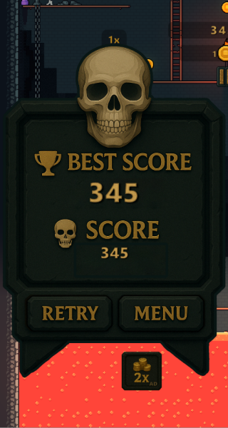 4、一旦掉落,便会即刻死亡,挑战随即失败,此时可查看当前所获分数。