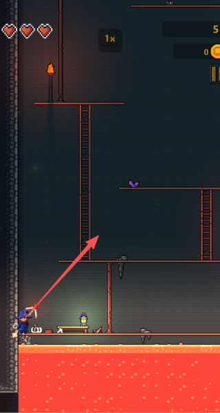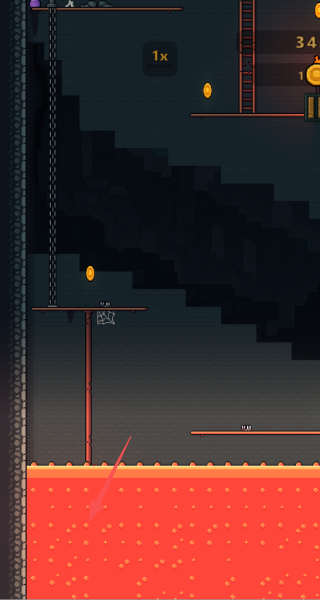 3、操作务必得当,绝不能让角色掉进下方的岩浆里。