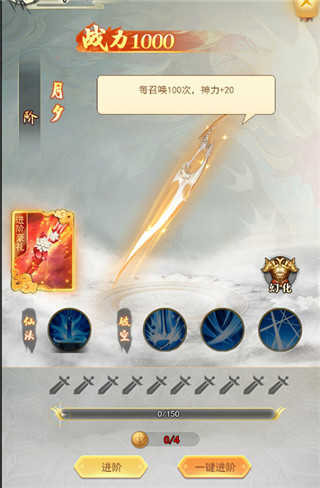 当修仙达到2转3重时,神兵系统正式开启。玩家激活神兵,不仅能提升自身战力,还可改变角色所穿戴的神兵。提升神兵属性的方式有升星与吞丹,同时消耗进阶丹进行进阶,能让神兵获取更高属性。当神兵达到1阶后,角色会获得主动技能,助力战斗更为顺利。