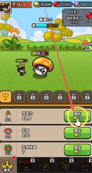 1、在对战过程中,我们能够选择花费金币来增强自身的攻击力、生命值等属性。
