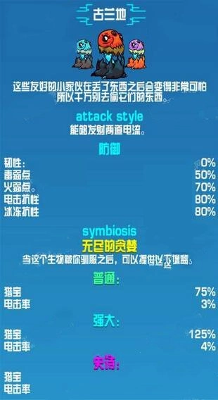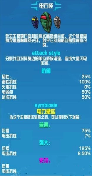 崩溃大陆第三世界的生物,同时也是崩溃大陆截至目前的最后一种生物。它具备两种攻击方式,其一为发射电元素球,其二是在自身周围生成一个领域。由于其拥有电属性,能够对目标造成多段伤害,堪称极为强大的存在。此外,它还拥有特殊的寻宝幸运加成,称得上是这款游戏里最为好用的宠物。