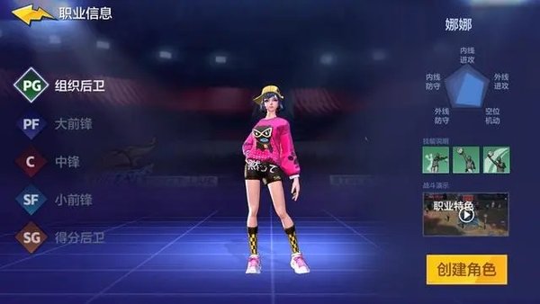 初入游戏,你要先挑选位置来创建角色。可从组织后卫(擅长抢断传球)、大前锋(盖帽投篮出色)、中锋(专注篮板对抗)、小前锋(精于中投突破)、得分后卫(三分投手)这几个位置中任选其一,选你钟爱的位置就好,以便充分发挥自身最大优势。