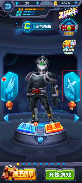1、点击右边的武器,进入武器进化界面;
