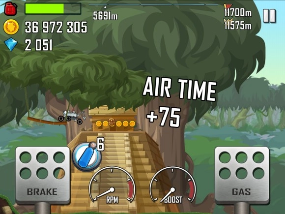 游戏的操作方式很直观,左边是刹车按钮,右边是油门按钮。车辆在地面行驶时,主要靠油门来提速、刹车来降速。一旦车子飞到空中,按油门能让车头抬高,按刹车则会让车头压低。所以,当车辆处于腾空状态时,玩家得灵活操控这两个按钮来调整车身姿势,保证能平稳着陆。这里分享一个小窍门:车子在空中时,车头往往会抬得比较高,这时候可以多按几次(或者长按)刹车按钮,这样能快速把车身姿势调整好。