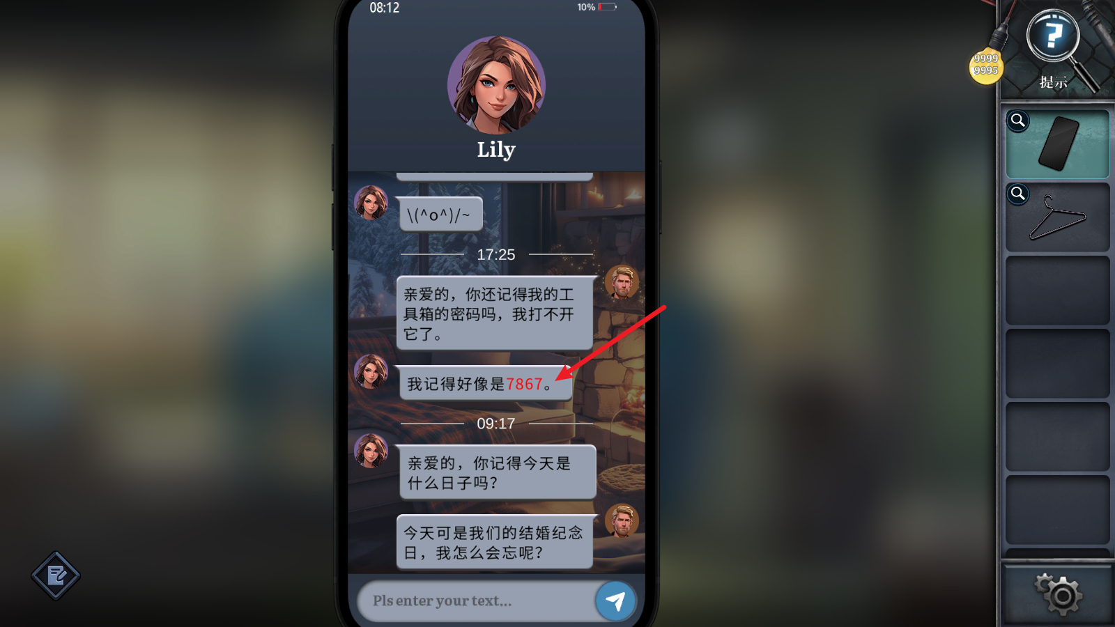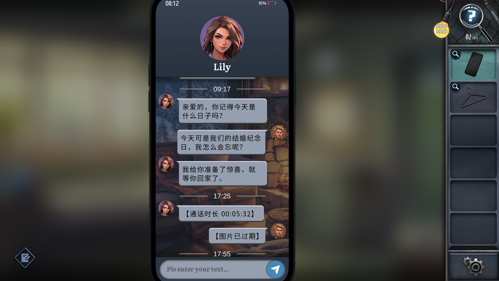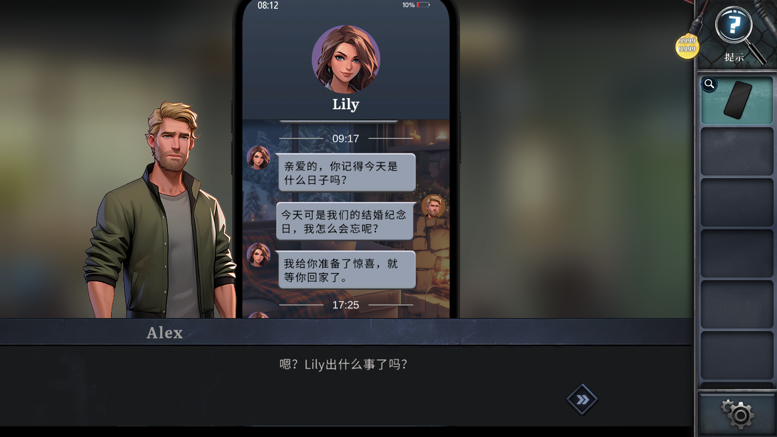 点击右侧已收集物品旁的放大镜,就能查看具体细节,比如在这里可以看到手机里的对话内容。