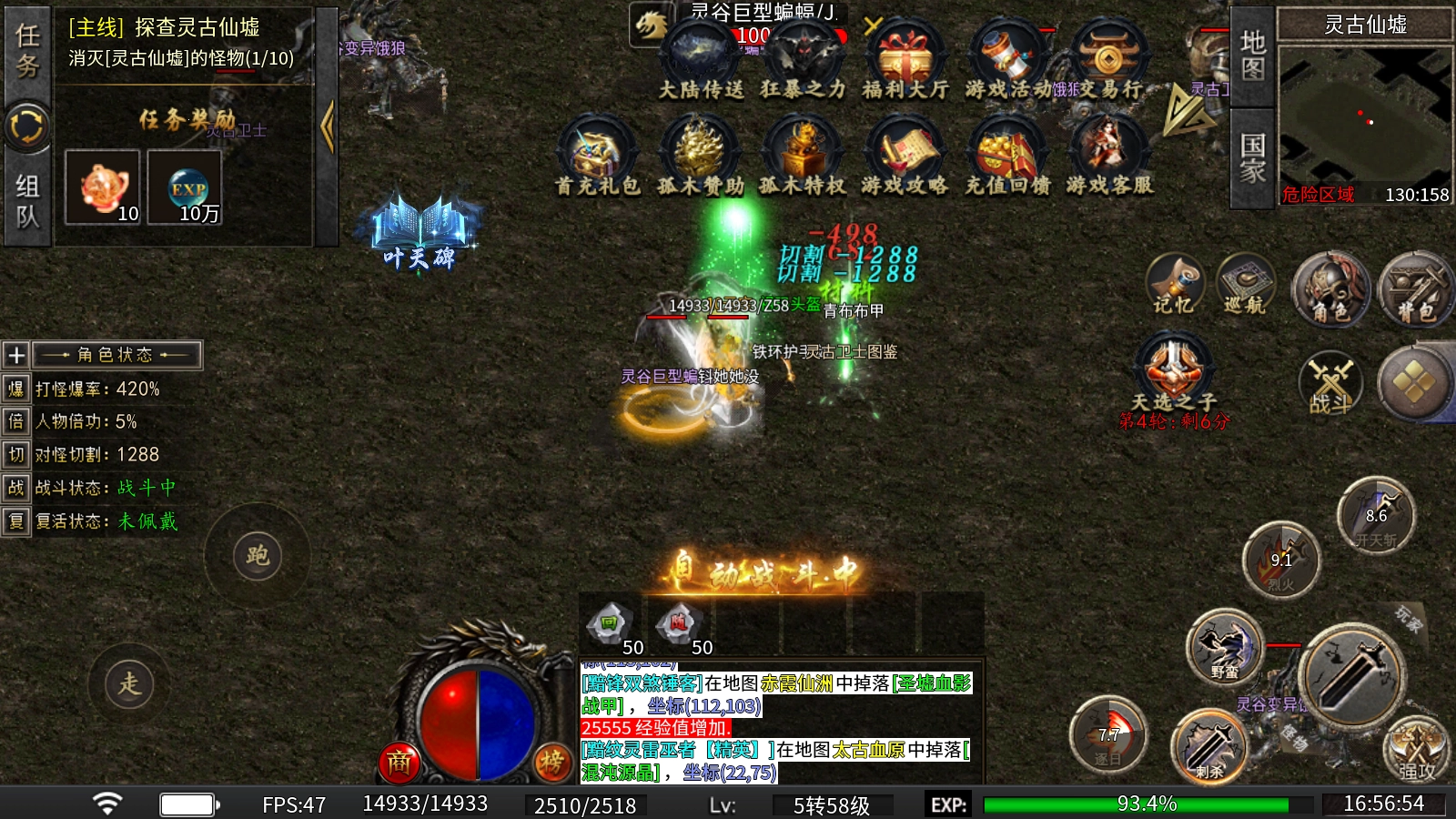实物回收玩法中,所有怪物都有概率掉落可用于回收的物品,通过回收这些物品能够兑换到大量灵符,同时进行实物回收还会累积充值额度,从而让玩家获取累充奖励。