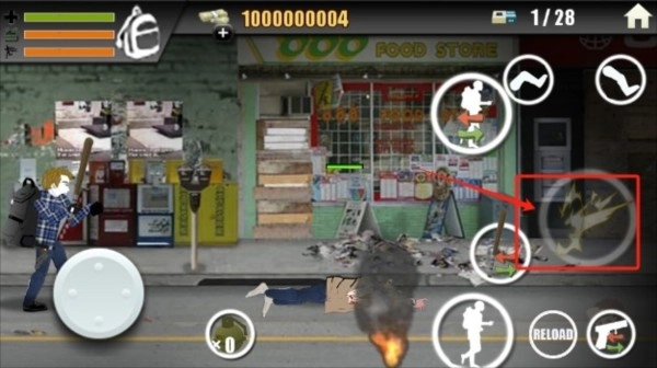 游戏里的这两个特定按钮,能够用来踹开靠近的僵尸。