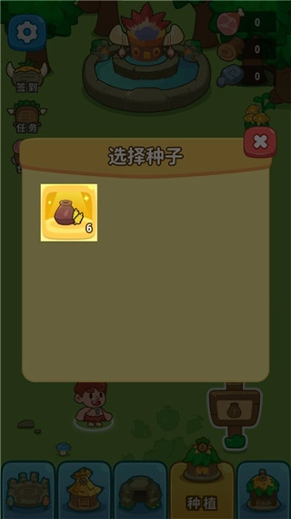 点击“播种”按钮后,从自己的背包里挑选要种植的种子。