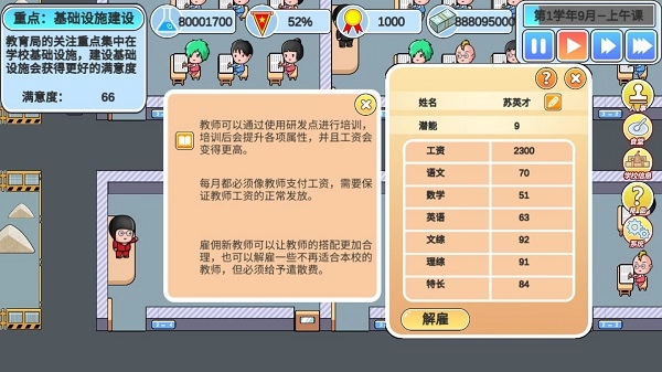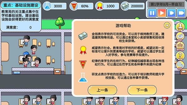 游戏开启后,会出现这样贴心的小提示,帮助玩家更有效地管理学校。