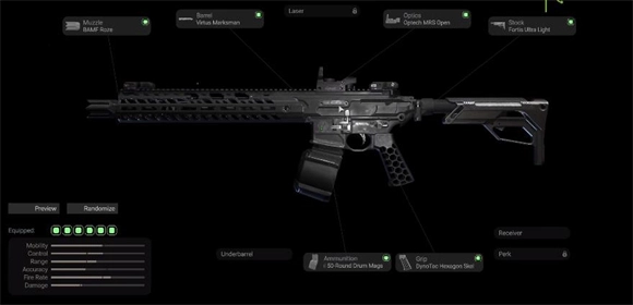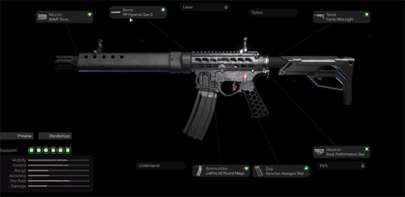 SIG这套装备SIG推荐这样搭配:枪口选bamf,枪管选virtus,瞄准镜用mrs,枪托配Fortis Light,子弹选magpul50,后握把则是dynotac。