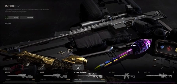 从狙击步枪的综合数据来看,R7000骨架(skeleton)的性能最为出色,非常推荐使用,排在它之后的则是AWM和R7000这两款。