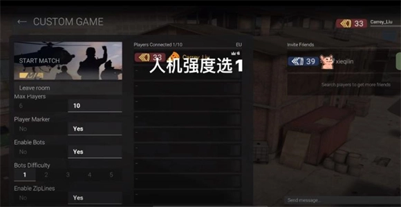 接着回到主界面,点击界面上的quick play就能快速启动游戏,点击最下方的custom game则可以创建房间进行自定义游戏。