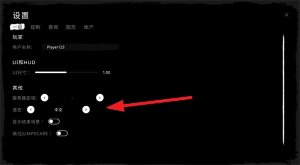 直接打开游戏后,找到language功能选项,点击最右侧的按键就能持续切换语言,直到切换成中文为止。