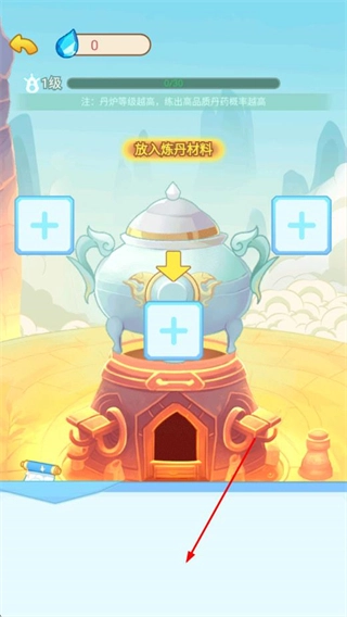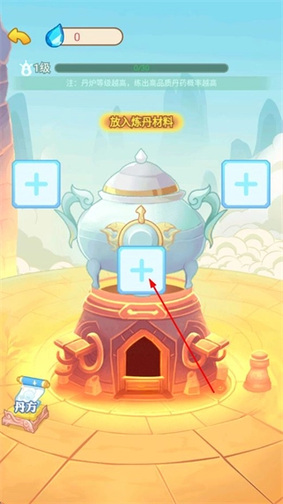 在炼丹界面找到丹炉旁的加号按钮并点击,然后把炼丹需要用到的材料添加进去。