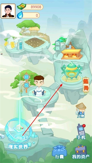在异世场景里布设丹炉、修炼台这类奇幻建筑,玩家通过搜集材料、升级丹炉来炼制各类丹药,而丹药的效果能直接影响现实产业,整个养成逻辑清晰明确,并且和逆袭的主线剧情深度融合。