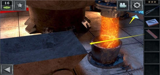 首先点击下方场景地面上的两个道具,获取长钳子与匕首各一件,之后再点击熔炉的槽口。