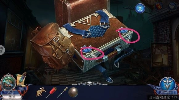 左侧的地面上放着一个箱包,箱子表面印有手提箱的标识。有人正用指甲锉试图撬开这个箱子,箱子里装着权威文件和一把火枪。