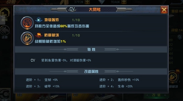 CV表示受到鱼雷伤害-5%,对潜艇伤害+5%