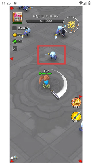 对局刚开始时操控【Lv.1】的角色,使用攻击技能战胜【蓝色小兵】,以此推进【0/1000】的目标进度。