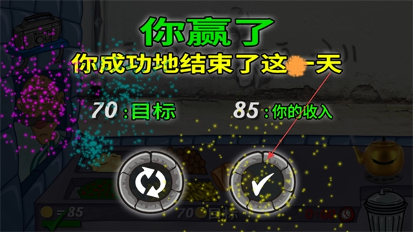 当完成目标数量后,会触发“你赢了”的结算界面,点击对勾按钮即可结束当前关卡。