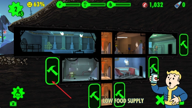进入游戏后,点击右下角的锤子图标就能建造各类避难设施。
