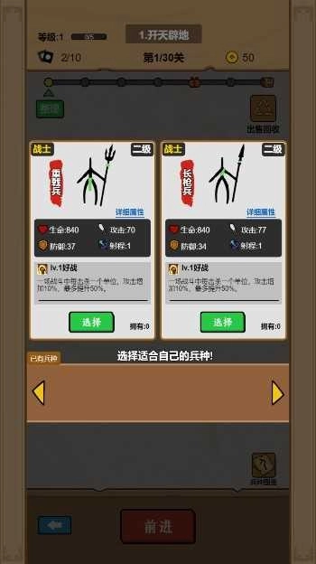 武器场景中融入了古文字元素,让玩家在战斗过程中领略中华古老文明的独特魅力。游戏玩法简单易上手,玩家需要合理搭配不同兵种,巧妙利用地形优势来制定战术策略。全屏释放的技能特效炫酷夺目,关卡设置丰富多样,每一局对战都充满了脑力博弈与运气碰撞的双重乐趣,操作简便适配全年龄段玩家。