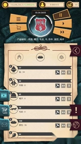 资源是游戏的核心要素之一,主要通过生产获取,不过前期资源匮乏会导致各类建设进度缓慢,玩家也能借助交易来购买所需资源。